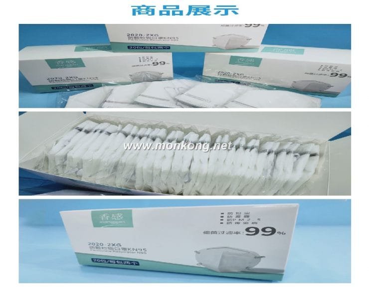 Product Description: Name:KN95 Disposable Medical Face MaskColor : WhiteSterile:YesMaterial:Non-wovenPacking: 5 pcs/bagUsage:Block dust particles, smoke, pollen,Anti-Dust ,Anti-bacterial,etc.